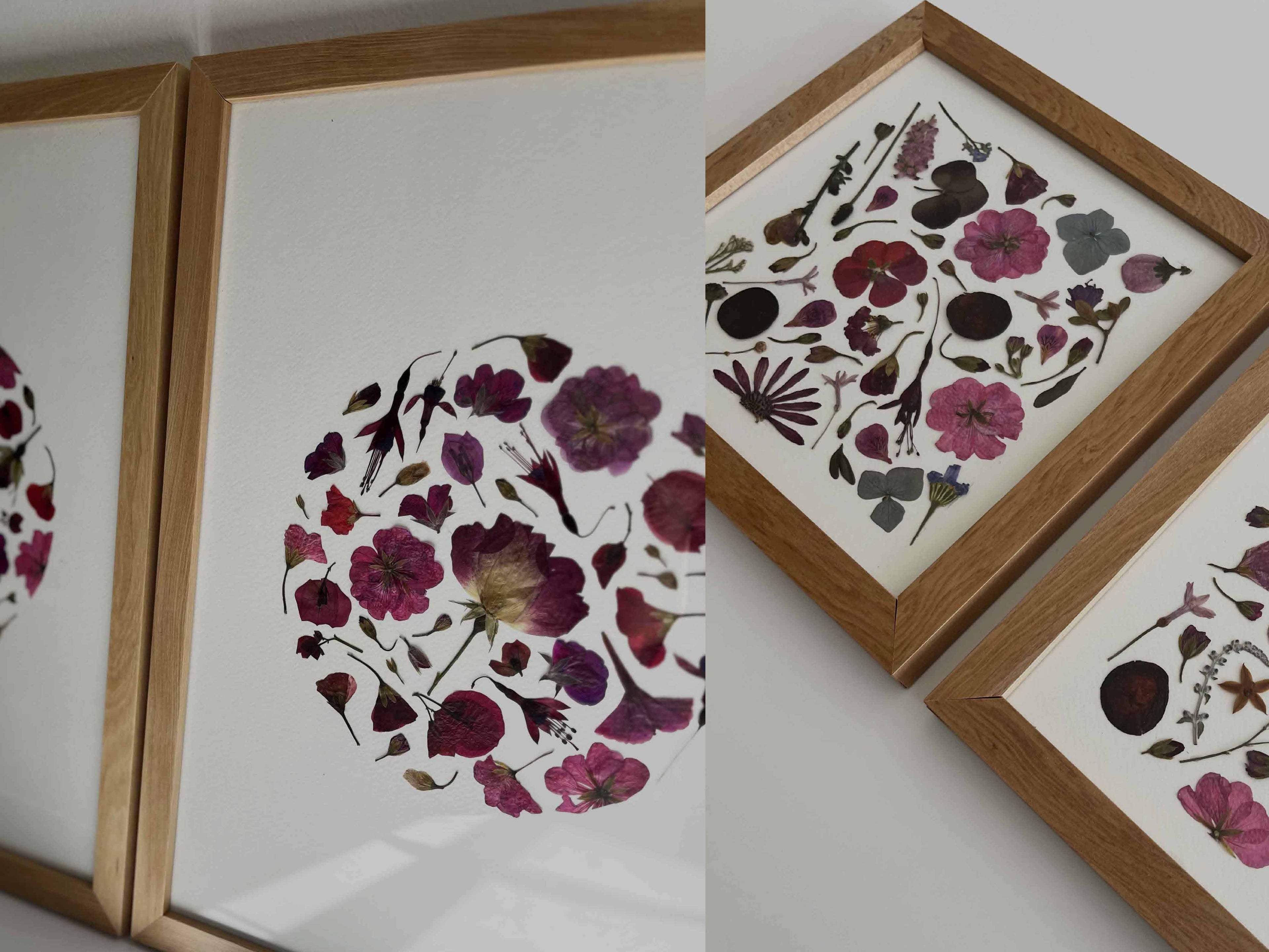Existen distintas técnicas de prensado, en mis cuadros utilizo la técnica con prensa botánica, es decir dos placas planas entre las cuales se colocan las plantas, generalmente entre hojas de papel absorbente.