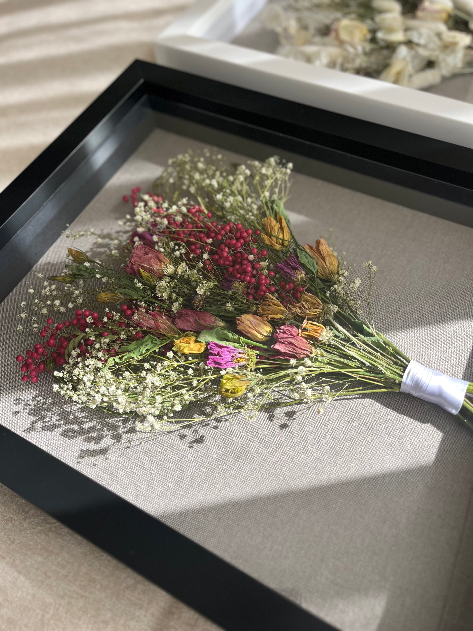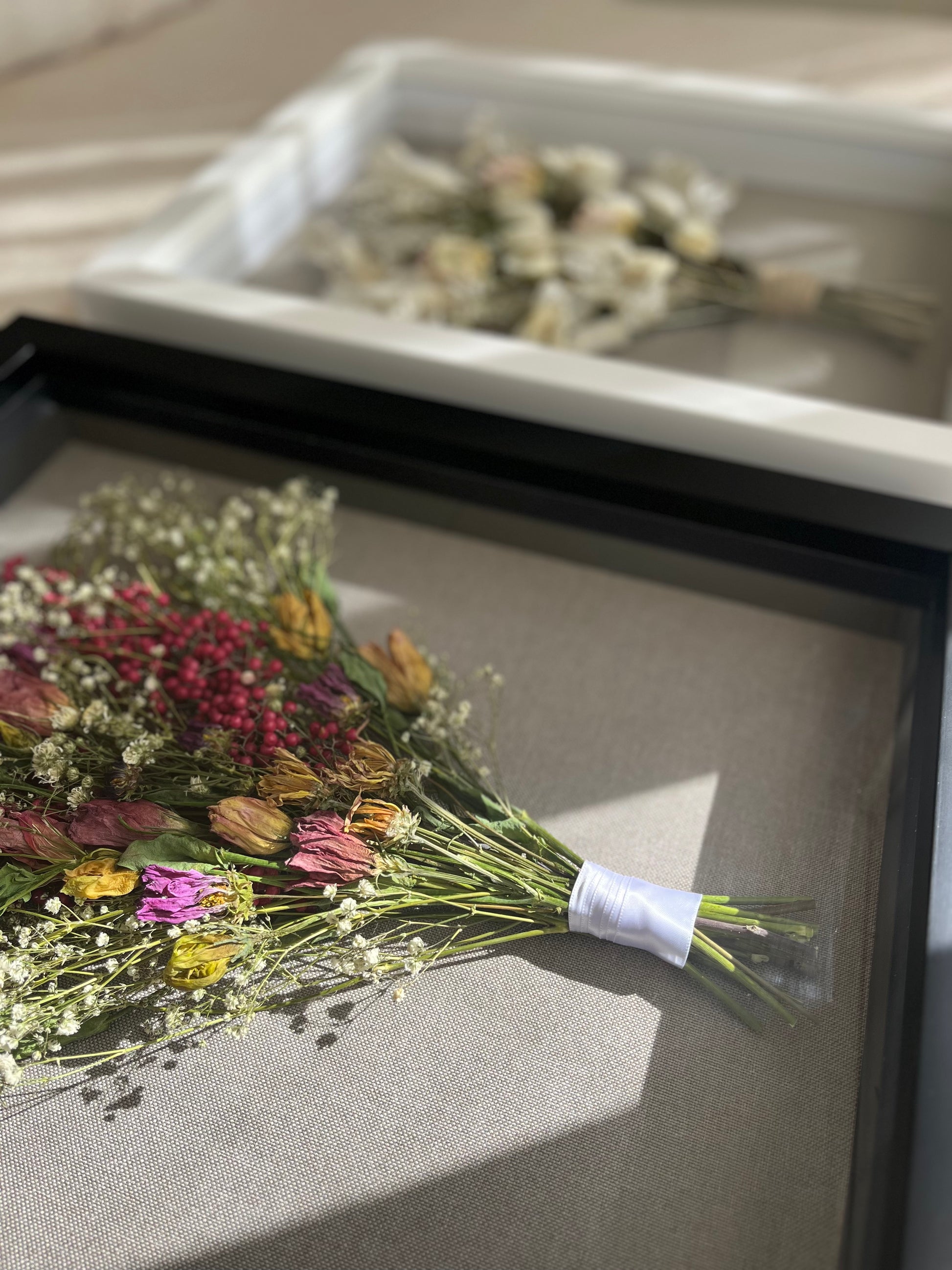 Secamos y enmarcamos tu ramo de novia, para que lo tengas como un recuerdo especial para toda la vida.