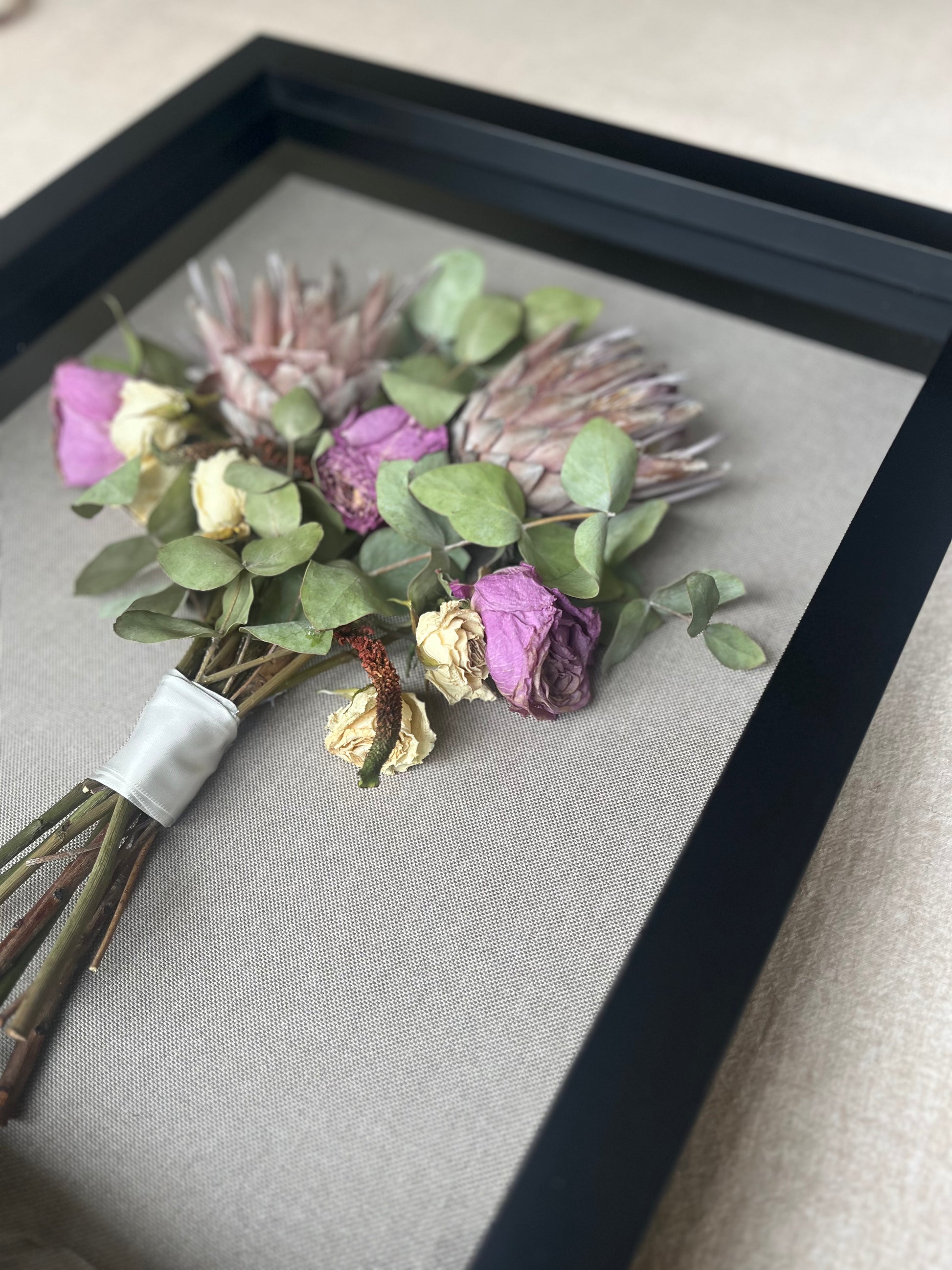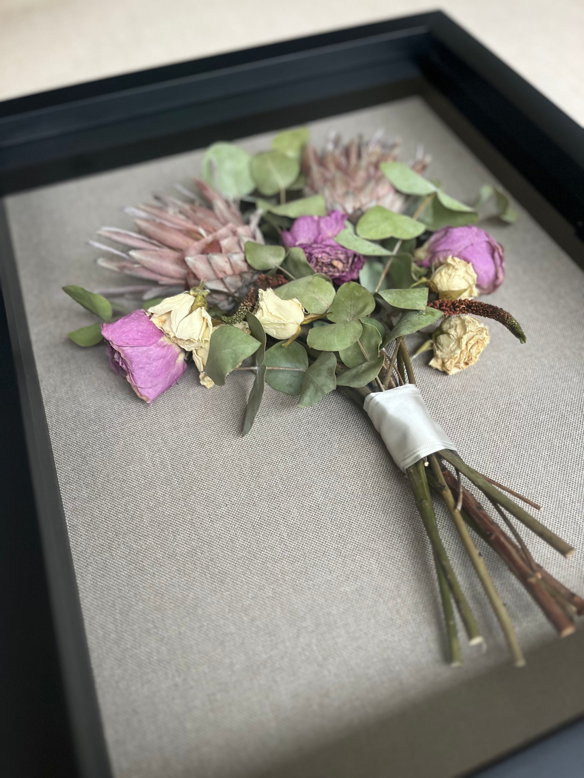 Secamos y enmarcamos tu ramo de novia, para que lo tengas como un recuerdo especial para toda la vida.